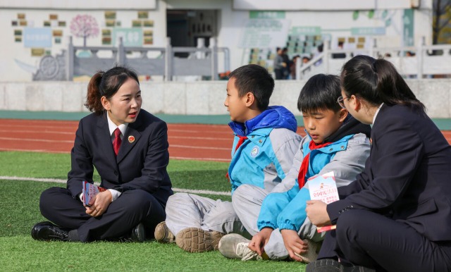 11月28日,貴州省銅仁市玉屏侗族自治縣人民檢察院組織檢察官走進(jìn)第四小學(xué),開(kāi)展“憲法知識(shí)進(jìn)校園”活動(dòng),通過(guò)開(kāi)設(shè)憲法主題教育課、普及法律知識(shí),使學(xué)生加深對(duì)憲法知識(shí)的了解,從小樹(shù)立遵守憲法的意識(shí)。中國(guó)教育報(bào)-中國(guó)教育新聞網(wǎng)通訊員 胡攀學(xué) 攝