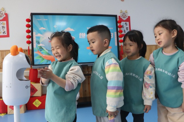 小朋友在利用智能洗手設(shè)備洗手。通訊員 李海濤 攝