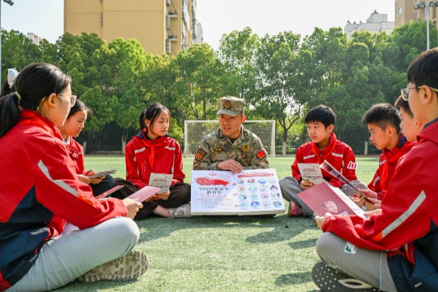 安徽省合肥市廬陽(yáng)區(qū)林店街道武裝部聯(lián)合轄區(qū)小學(xué)開展“國(guó)家安全,你我共筑”主題教育活動(dòng)。武裝部工作人員向?qū)W生們普及國(guó)家安全知識(shí),鼓勵(lì)學(xué)生們從小樹立國(guó)家安全意識(shí)和愛國(guó)情懷,自覺維護(hù)國(guó)家安全。中國(guó)教育報(bào)-中國(guó)教育新聞網(wǎng)通訊員 趙明 攝