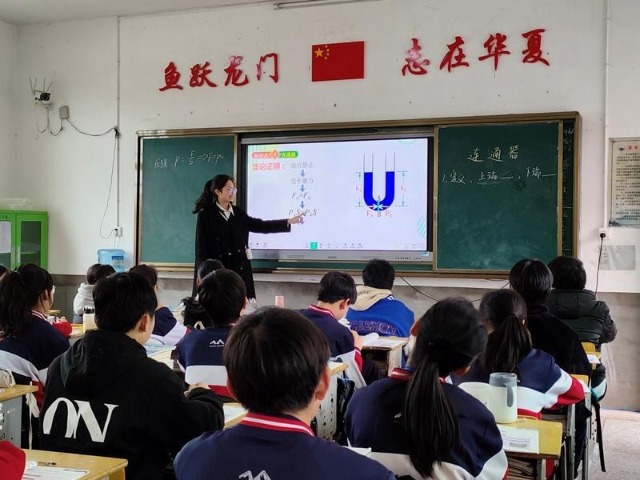 小學組的唐敏芝老師巧構多元課堂,利用師生“共講”、生生“互動”的小數點“移動操”,突破了“小數點移動引起大小變化”的難點;來自龍門鎮中心小學的方寅平老師,以其極具感染力的教學語言和自然大方的教學態度、和藹可親的表情,為學生們展現了一堂妙趣橫生的科學課。初中組化學科的羅燦霞老師拋出問題,引導學生分組實驗,體現了“教”與“學”雙向循環的新課改理念;語文科的彭莎莎老師以微博熱搜“李家有高臺階建好了!”導入新課,為初中語文課堂賦予了生機和活力。