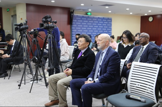 在問答環(huán)節(jié),彭諾亞和潘慶中現(xiàn)場(chǎng)回答了關(guān)于中美高等教育合作、高等教育改革與“一帶一路”倡議、技術(shù)在推動(dòng)跨越文化鴻溝中的作用等問題。在談及“一帶一路”倡議與高等教育改革的關(guān)系時(shí),潘慶中指出,高質(zhì)量發(fā)展是“一帶一路”倡議新階段的焦點(diǎn),這意味著沿線國(guó)家應(yīng)通過改革來培育更多視野寬闊的高質(zhì)量人才。彭諾亞對(duì)此表示贊同,并強(qiáng)調(diào)高等教育對(duì)促進(jìn)“一帶一路”倡議沿線國(guó)家民心相通的重要性。