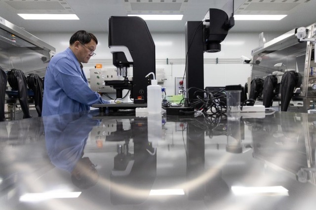 9月24日,中國科學院國家天文臺研究員、嫦娥六號任務副總設計師李春來在月球樣品實驗室處理嫦娥六號月球樣品。新華社記者金立旺攝