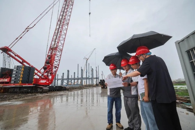 2025年6月10日,在東方特鋼鎳鉻新材智造項(xiàng)目建設(shè)現(xiàn)場(chǎng),浙江省嘉興市南湖區(qū)駐企“紅色專(zhuān)班”黨員與企業(yè)施工方一起查看項(xiàng)目現(xiàn)場(chǎng)推進(jìn)情況。新華社記者 徐昱 攝