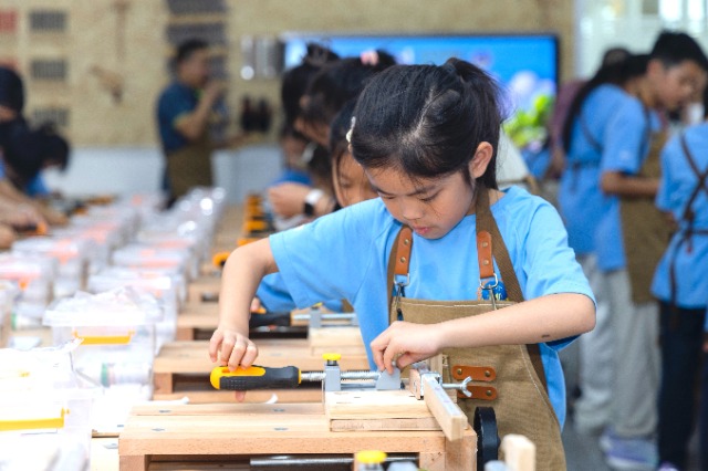 中國教育報-中國教育新聞網訊(記者 張赟芳)7月2日,揚州工業職業技術學院雙創學院木工實踐基地迎來了一場別開生面的“大思政課”。來自小學的40名少先隊員,在大學生志愿者的指導下,用傳統木工技藝復原抗戰時期民居模型,以匠心勞作觸摸歷史溫度,這也是雙創學院聯合馬克思主義學院將思政教育融入實踐、深化雙創育人理念的創新探索。