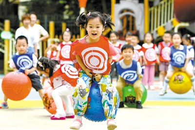 六月十五日,浙江省湖州市長(zhǎng)興縣龍山幼兒園的孩子參與歡樂(lè)蹦跳趣味運(yùn)動(dòng)。當(dāng)日是杭州亞運(yùn)會(huì)倒計(jì)時(shí)一百天,該園舉辦“校園‘燃’起來(lái) 全面迎亞運(yùn)”校園運(yùn)動(dòng)會(huì),孩子們?cè)诳鞓?lè)中期盼亞運(yùn)會(huì)的到來(lái)。譚云俸 攝