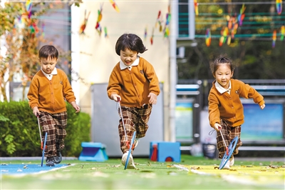日前,山東省青島市李滄區青峰路幼兒園開展了豐富多彩的趣味戶外活動,孩子們通過參加曲棍球比賽、跳房子等戶外游戲,鍛煉身體靈敏性和協調性,培養勇敢拼搏、團結協作、不怕困難的意志品質。圖為孩子們進行滾鐵環比賽。通訊員 張鷹 攝