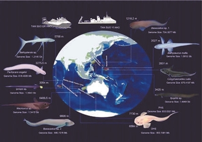 團隊經(jīng)過多次深海巡航,采集了來自深海不同區(qū)域的11種魚類樣本,通過對這些樣本的基因組數(shù)據(jù)進行深入分析,構(gòu)建了深海魚類的“生命進化樹”,揭示了脊椎動物征服深淵的歷程。結(jié)果顯示,少數(shù)類群的深海魚類在1億年前便開始適應(yīng)深海環(huán)境,而大多數(shù)現(xiàn)存的深海魚類則是在6500萬年前的大滅絕事件后才進入深海區(qū)域。