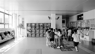 二是空間設計的標準化依賴。一些學校在“安全至上”的管理邏輯下,走廊普遍呈現同質化格局,如“單側連續教室+單通道+標準展板”的組合模式。過度標準化的走廊空間功能單一、形式呆板,很大程度地壓縮了空間的可能性,無法有效支持學生的多元化發展需求,難以激發學生的學習興趣和創造力。