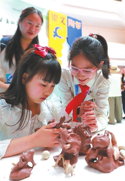 4月26日,湖南省長(zhǎng)沙市岳麓區(qū)博才梅溪湖小學(xué)蔣傳雨老師帶領(lǐng)學(xué)生到第八屆中小學(xué)生藝術(shù)展演活動(dòng)全國(guó)匯演實(shí)踐活動(dòng)成果(工作坊)展示現(xiàn)場(chǎng)參觀,孩子們收獲滿滿。 本報(bào)記者 張學(xué)軍 攝