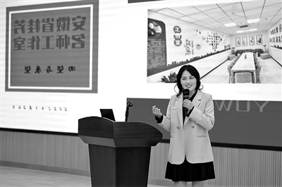 桂芳在教研活動上發言。資料圖片