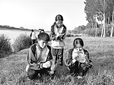 育華學校學生在探究大汶河生態系統退化原因。 學校供圖