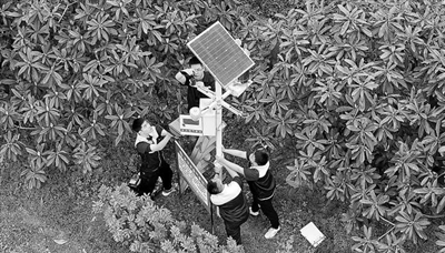 蠟燭村是萬州庫區最大的貴妃枇杷生產基地,貴妃枇杷年產值超千萬元。重慶三峽職業學院智慧農業科創團隊為貴妃枇杷生產基地量身打造了一種枇杷實時生長需求探測方法,指導果農實現增產增收。 圖為團隊在枇杷果園安裝智能追日光伏農業氣象站。