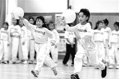 浙江省湖州市長興縣第二實驗小學學生在開展趣味運動。通訊員 譚云俸 攝