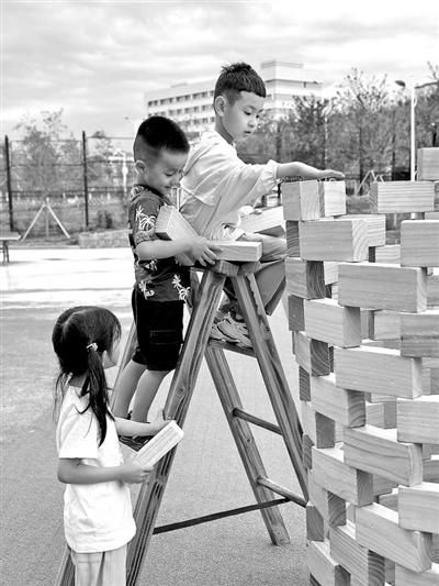 幼兒合作建“高樓”。 幼兒園供圖