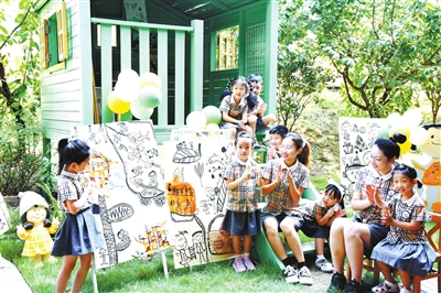 為發(fā)展孩子們的語言表達能力和想象力,浙江省東陽市第二實驗幼兒園每周都會開展戶外游戲故事分享活動。孩子們不僅可以聆聽有趣的故事,更在自然的浸潤中學會了表達情感,提升了社會交往能力。圖為教師與孩子們圍坐在一起,共同聆聽孩子創(chuàng)作的故事。呂婧儀 文 李一鳴 攝