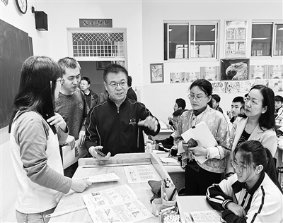 教師與教研員在聊城市實驗中學課堂上研討學科思維教學。侯雯雯 攝
